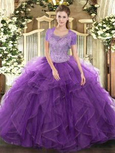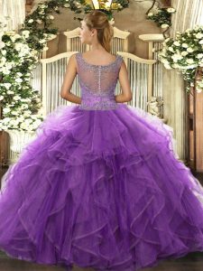 Enchanting Lavender Sleeveless Floor Length Beading and Ruffled Layers Clasp Handle Sweet 16 Quinceanera Dress