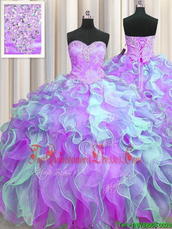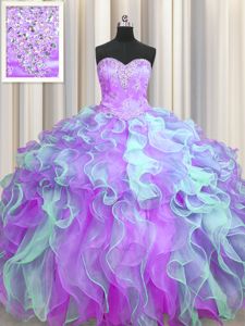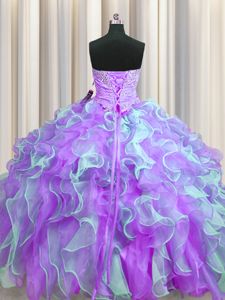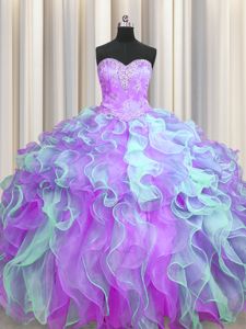 Enchanting Multi-color Ball Gowns Organza Sweetheart Sleeveless Beading and Appliques and Ruffles Floor Length Lace Up Quinceanera Dama Dress