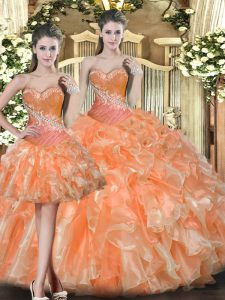 Enchanting Orange Red Sweetheart Lace Up Beading and Ruffles 15 Quinceanera Dress Sleeveless