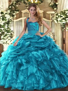 Enchanting Sleeveless Floor Length Ruffles and Pick Ups Lace Up 15 Quinceanera Dress with Teal