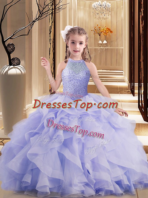 Enchanting Sleeveless Kids Formal Wear Brush Train and Beading and Ruffles