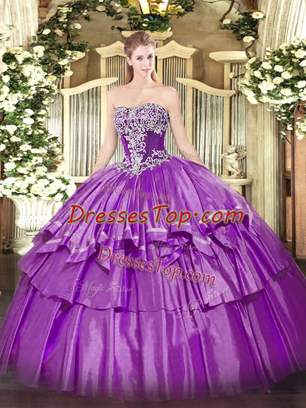 Enchanting Sleeveless Lace Up Floor Length Beading and Ruffled Layers Quinceanera Dress