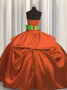 Enchanting Sleeveless Taffeta Floor Length Lace Up Ball Gown Prom Dress in Rust Red for with Beading and Ruching and Bowknot