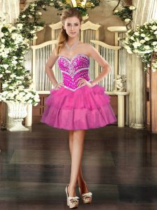 Enchanting Sleeveless Tulle Floor Length Lace Up Ball Gown Prom Dress in Lilac with Beading and Ruffled Layers
