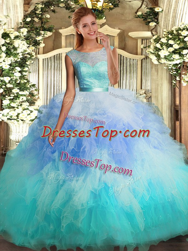 Enchanting Tulle Sleeveless Floor Length Vestidos de Quinceanera and Lace and Ruffles