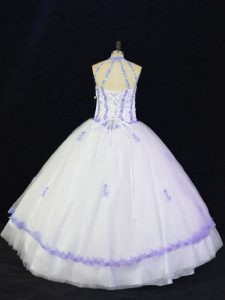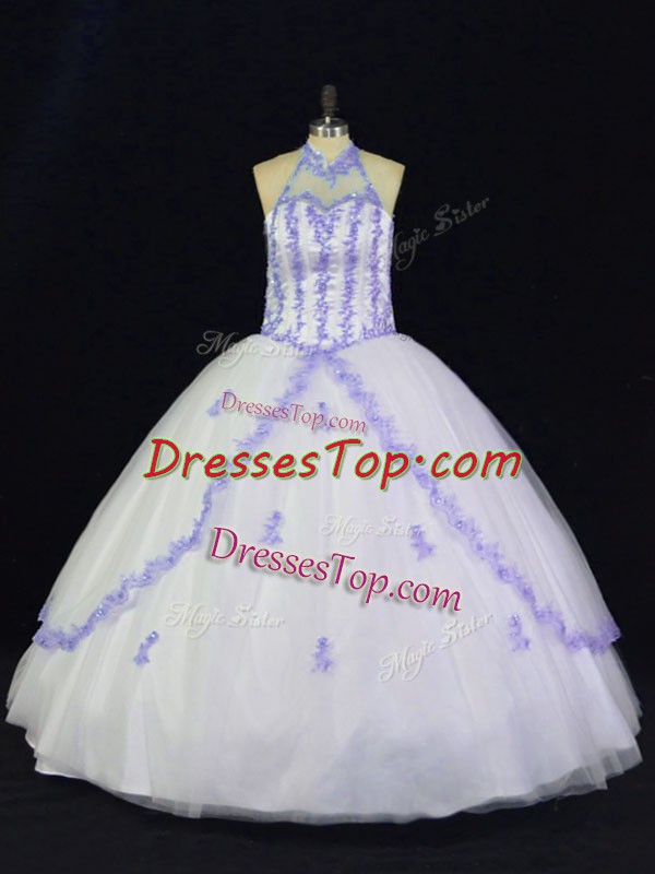 Enchanting White And Purple Lace Up Quinceanera Dresses Appliques Sleeveless Floor Length