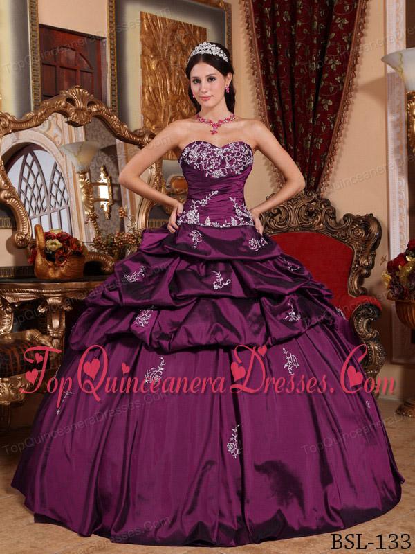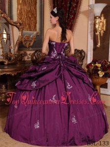 Euchsia Ball Gown Sweetheart Floor-length Taffeta Appliques Quinceanera Dress