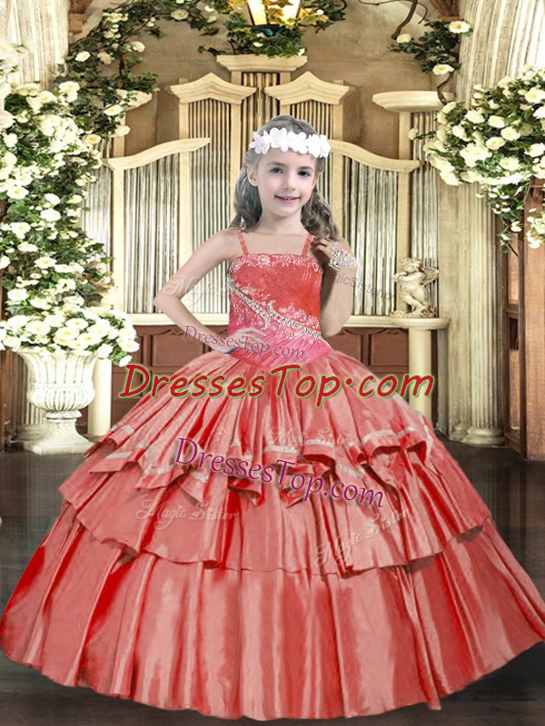 Excellent Ball Gowns Pageant Dress Womens Coral Red Straps Organza Sleeveless Floor Length Lace Up
