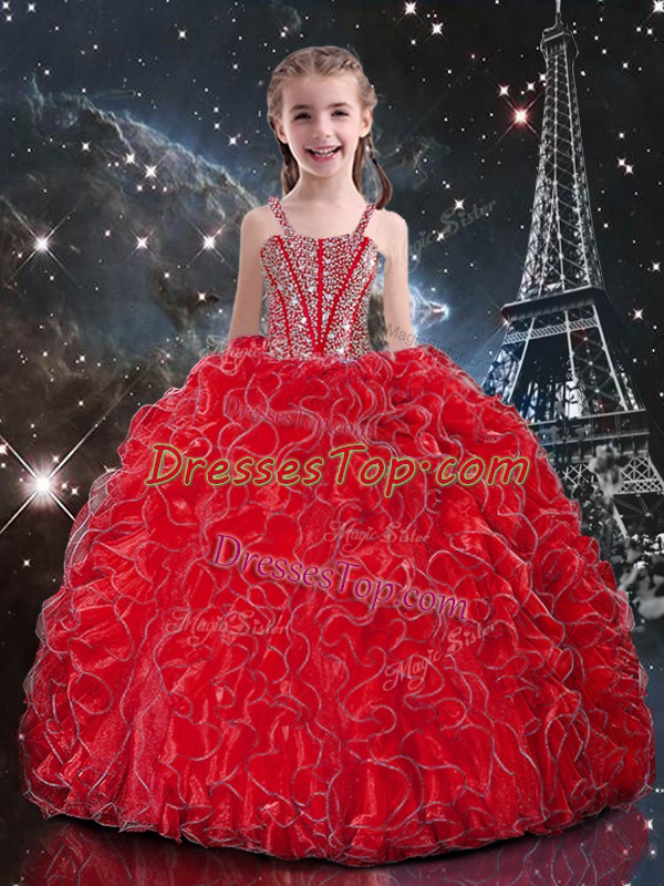 Excellent Beading and Ruffles Pageant Dress Toddler Coral Red Lace Up Sleeveless Floor Length