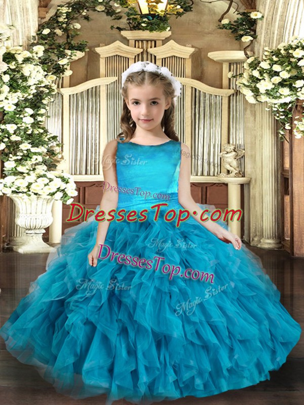 Excellent Blue Child Pageant Dress Party and Wedding Party with Ruffles Scoop Sleeveless Lace Up