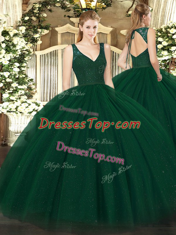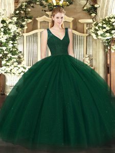 Excellent Dark Green Sleeveless Tulle Backless 15 Quinceanera Dress for Military Ball and Sweet 16 and Quinceanera