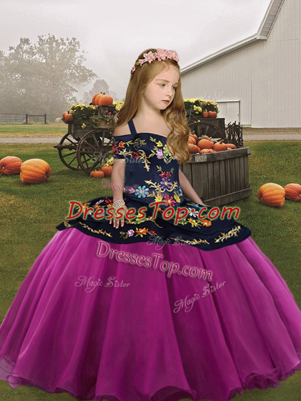 Excellent Embroidery Pageant Gowns For Girls Fuchsia Side Zipper Sleeveless Floor Length