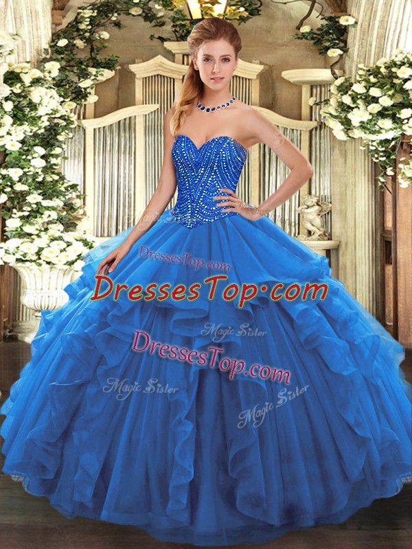 Excellent Floor Length Blue Sweet 16 Quinceanera Dress Sweetheart Sleeveless Lace Up