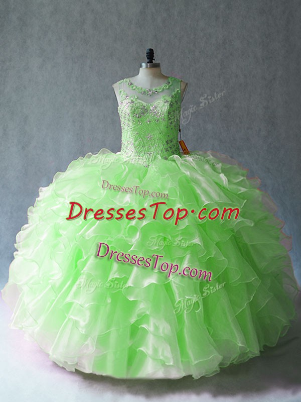 Excellent Floor Length Lace Up Sweet 16 Dresses for Sweet 16 and Quinceanera with Beading and Ruffles