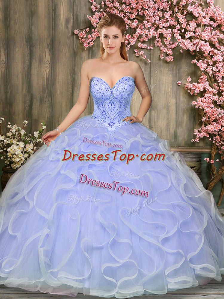 Excellent Lavender Sleeveless Beading and Ruffles Floor Length 15 Quinceanera Dress