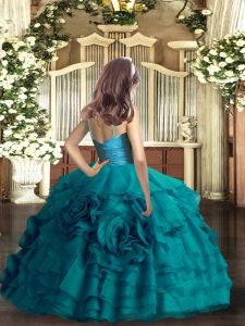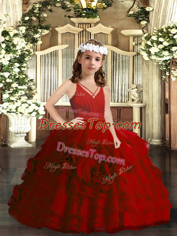 Excellent Red Organza Zipper Little Girl Pageant Gowns Sleeveless Floor Length Ruffled Layers