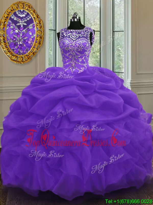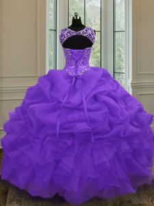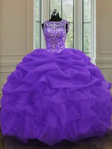 Excellent Scoop Pick Ups Eggplant Purple Sleeveless Organza Lace Up Quinceanera Gown for Military Ball and Sweet 16 and Quinceanera