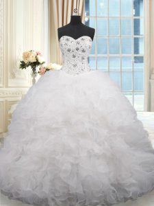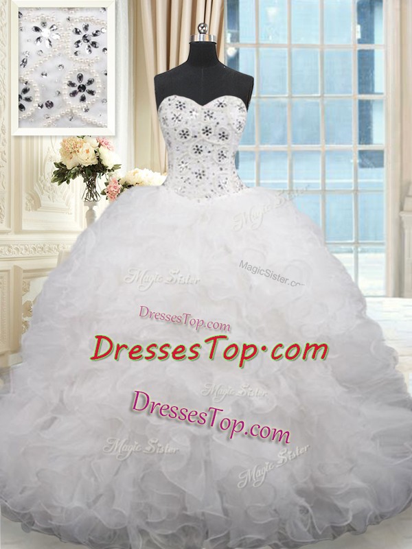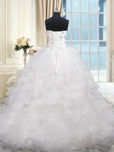 Excellent Sleeveless Brush Train Lace Up Beading and Ruffles Quinceanera Gowns