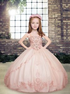 Excellent Sleeveless Lace Up Floor Length Beading Kids Pageant Dress