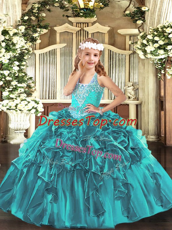 Excellent Teal Pageant Dress Toddler Party and Quinceanera with Beading and Ruffles V-neck Sleeveless Lace Up