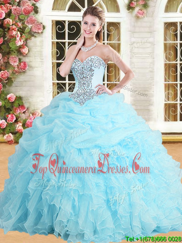 Exceptional Baby Blue Sweetheart Neckline Appliques and Ruffles and Pick Ups Quinceanera Dress Sleeveless Lace Up