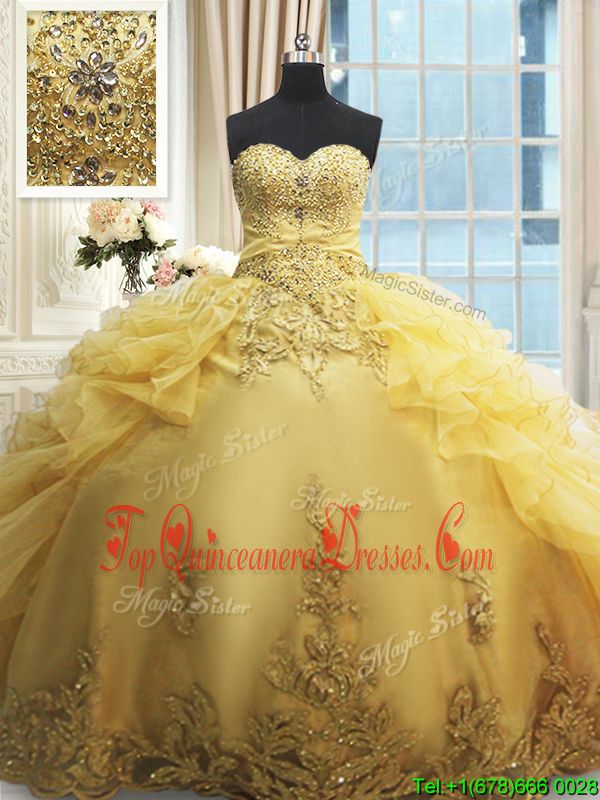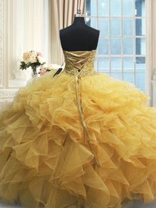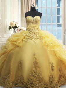 Exceptional Ball Gowns Ball Gown Prom Dress Yellow Sweetheart Organza Sleeveless Floor Length Lace Up