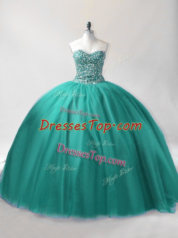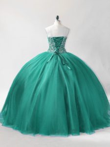 Exceptional Beading Quince Ball Gowns Turquoise Lace Up Sleeveless Floor Length