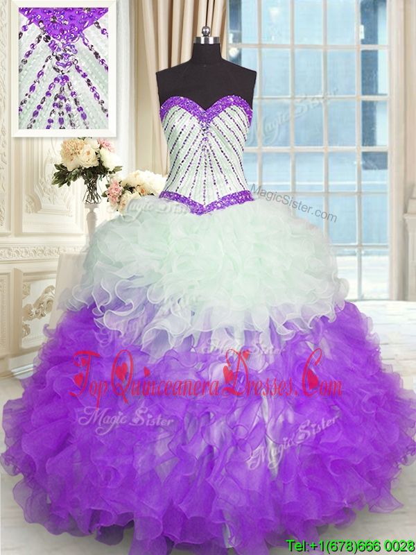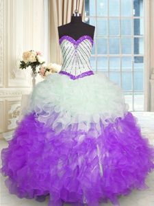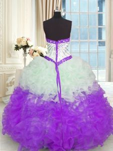 Lace Up Sweetheart Beading and Ruffles Vestidos de Quinceanera Organza Sleeveless