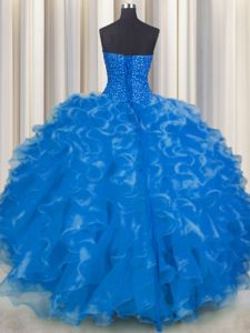 Exceptional Blue 15 Quinceanera Dress Military Ball and Sweet 16 and Quinceanera and For with Beading and Ruffles Sweetheart Sleeveless Lace Up