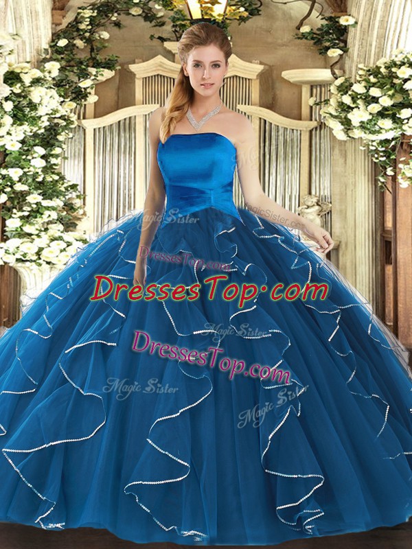 Exceptional Blue Tulle Lace Up Ball Gown Prom Dress Sleeveless Floor Length Ruffles