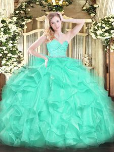 Exceptional Floor Length Ball Gowns Sleeveless Turquoise Quinceanera Gown Zipper