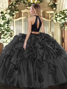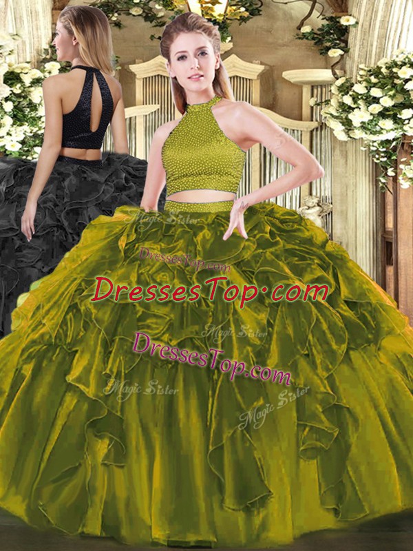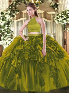 Exceptional Floor Length Olive Green Quinceanera Gowns Organza Sleeveless Beading and Ruffles