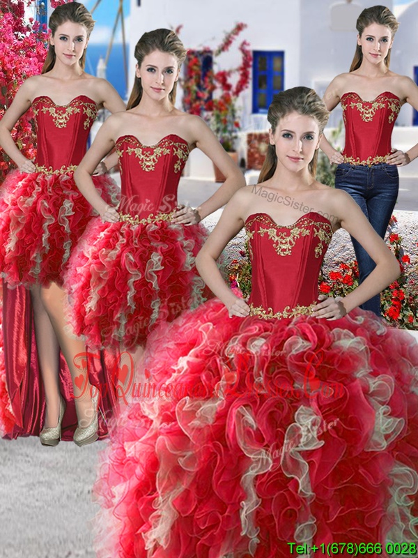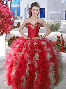 Exceptional Four Piece Red Quince Ball Gowns Military Ball and Sweet 16 and Quinceanera and For with Beading Sweetheart Sleeveless Lace Up