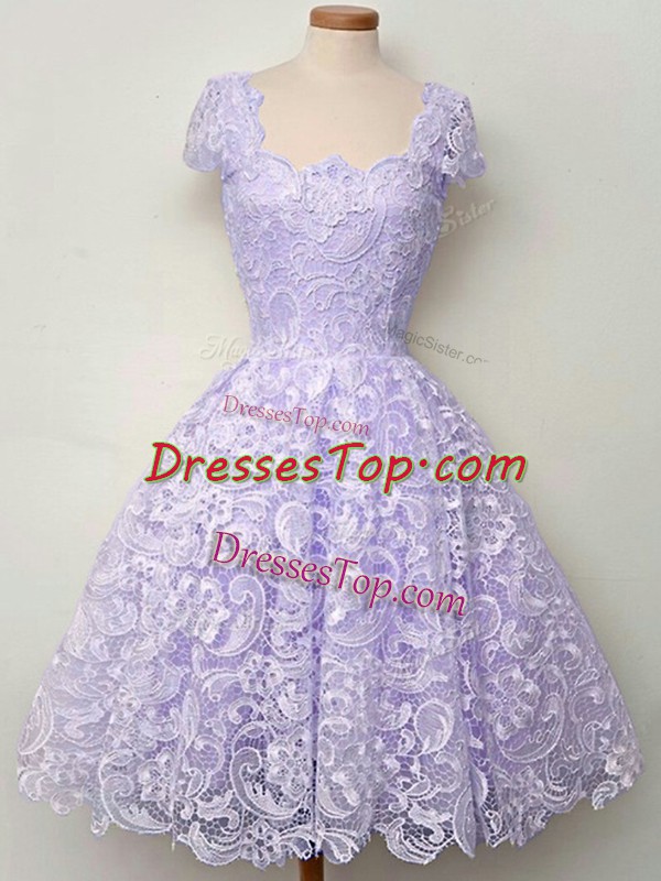 Exceptional Knee Length Lavender Quinceanera Dama Dress Scoop Sleeveless Lace Up