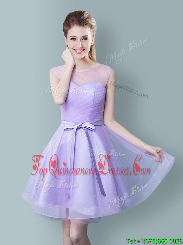 Exceptional Knee Length Lavender Vestidos de Damas Scoop Sleeveless Zipper