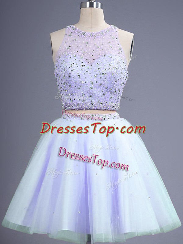 Exceptional Lavender Lace Up Quinceanera Dama Dress Beading Sleeveless Knee Length