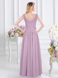 Exceptional Lavender Zipper Ruching Quinceanera Court of Honor Dress Sleeveless
