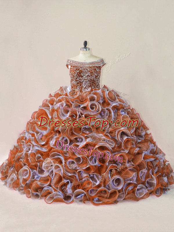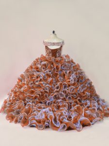 Exceptional Sleeveless Court Train Beading and Ruffles Quinceanera Gown