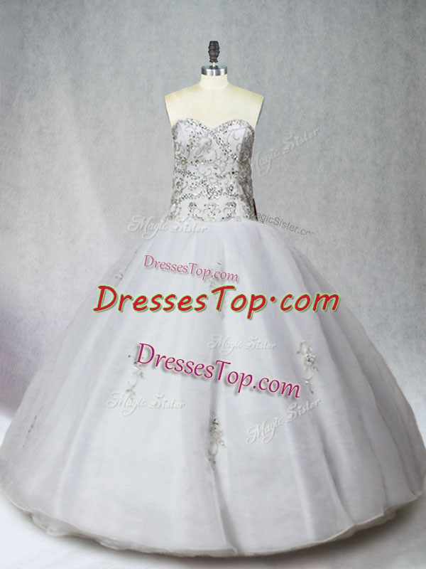 Exceptional Sleeveless Floor Length Beading Zipper Vestidos de Quinceanera with White