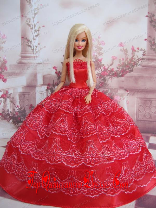 Exclusive Ball Gown Red Taffeta Barbie Doll Dress