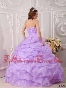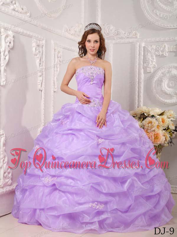 Exclusive Ball Gown Strapless Floor-length Organza Appliques Lavender Quinceanera Dress