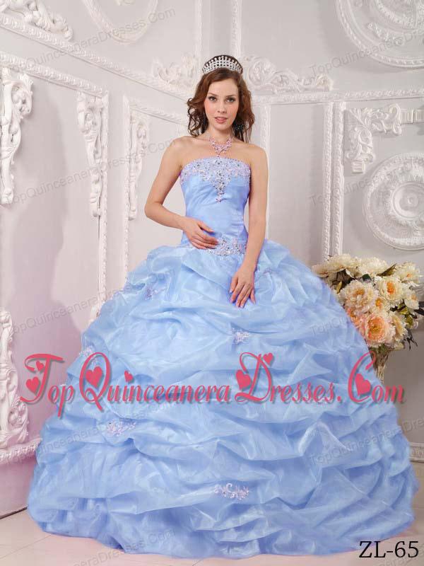 Exclusive Ball Gown Strapless Floor-length Organza Appliques Lilac Quinceanera Dress