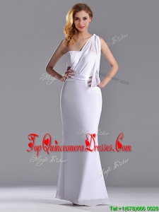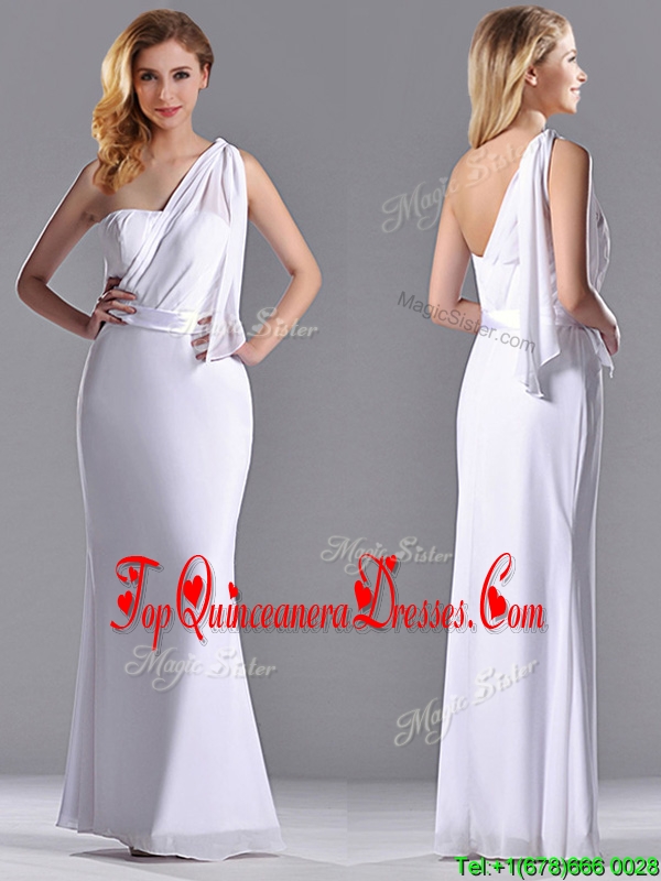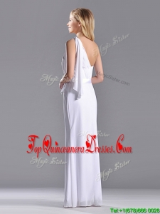 Exclusive Column White Chiffon Backless Dama Dress with One Shoulder