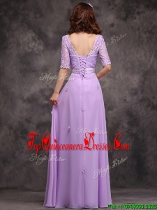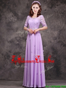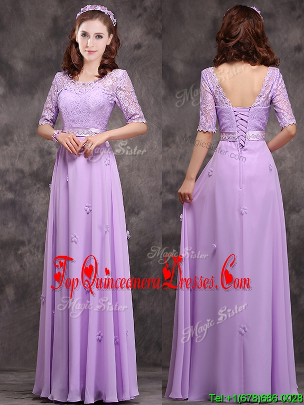 Exclusive Scoop Half Sleeves Lavender Damas Dress with Appliques and Lace