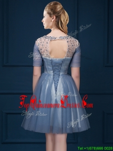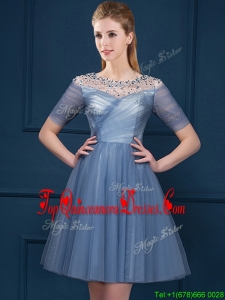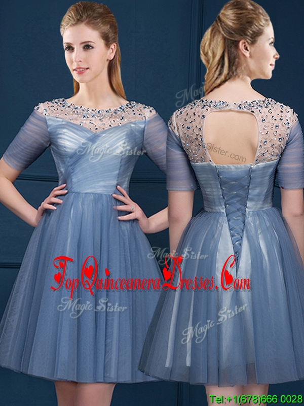 Exclusive Scoop Short Sleeves Beading Damas Dress in Navy Blue