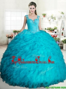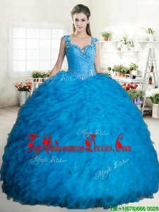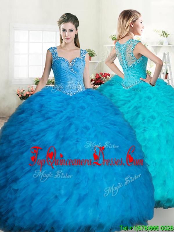 Exclusive Straps Tulle Quinceanera Dress with Beading and Ruffles