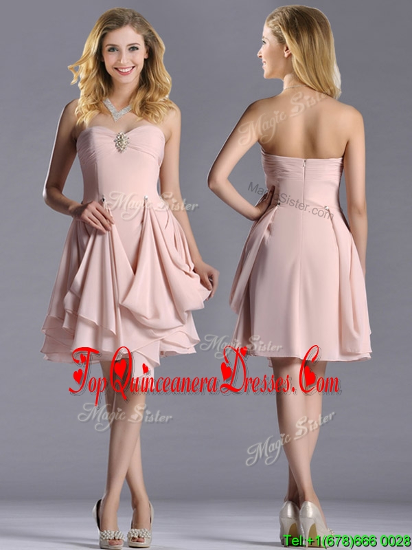 Exclusive Sweetheart Chiffon Beaded Dama Dress in Light Pink