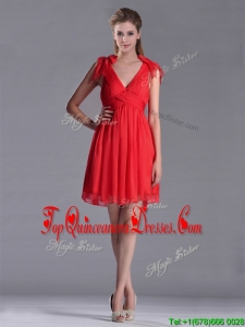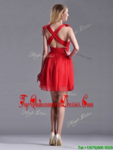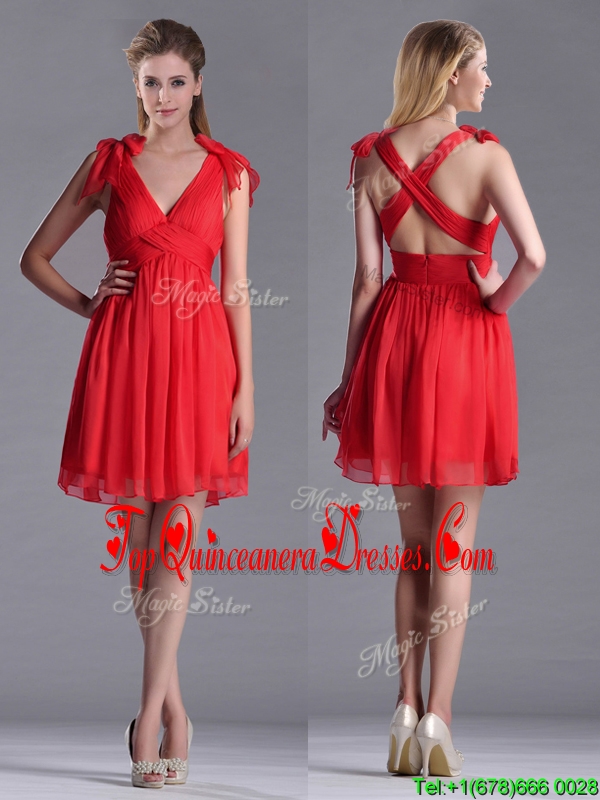 Exclusive V Neck Criss Cross Dama Dress with Ruching and Bowknot