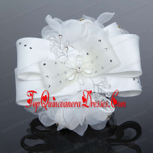 Exculsive White Lilac Satin Hair Flower with Beading
