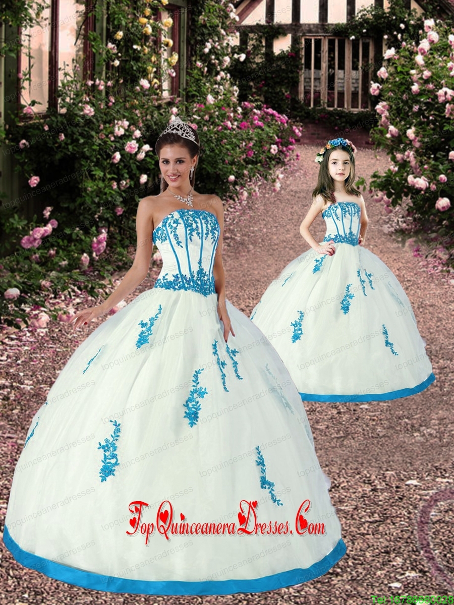 Exquisite Appliques White and Teal Princesita Dress for 2015